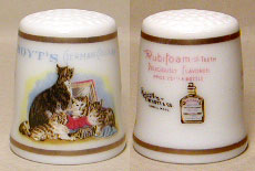 | フランクリン・ミント・コレクション 7 ネコの広告シンブル Advertising Cat Thimbles 1980年代に発売された Advertising Cat Thimbles 、ネコがデザインされたアンティーク広告のシンブル全20種類です。 |