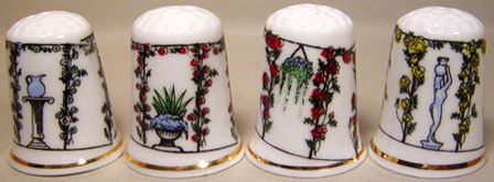| ホーム&ガーデン・シンブル 1 シンブル・コレクターにはガーデニングやインテリアに興味のある方が多いようですが、お花のシンブルは無数にあるのにガーデニングなどのシンブルは意外と少ないようです。そこで、ガーデニングやインテリアに関連するデザインのシンブルを色々集めてみました。 なお、お花をデザインしたシンブルは、「世界のシンブル」に多数掲載しています。また、「日本のシンブル フラワー1・2・3」をご覧下さい。 |