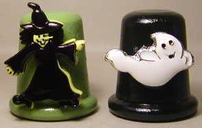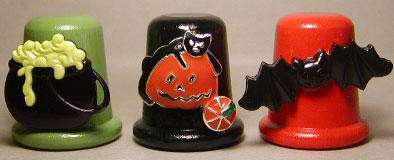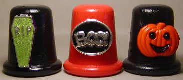 | ハロウイーンとは万聖節(11月1日)の前夜祭(10月31日)、秋の収穫を祝い悪霊を追い出す祭りです。 古代ケルトが起源と言われていますが、アメリカでは、カボチャをくり抜き目鼻口をつけたJack-O-Lantanを飾り、夜には怪物などに仮装した子供たちが「Trick or treat (いたずらかお菓子か)」と近所を回りお菓子を貰ったりします。そんなハロウィーンにちなんだユニークなシンブルを集めました。 |