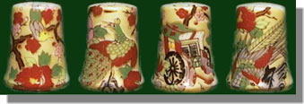 | 古典的な絵柄 主に輸出用として作られた日本製シンブルの中から、花鳥風月や歌舞伎、芸者など日本の古典的な風景・風俗をデザインしたシンブルを集めました。 |