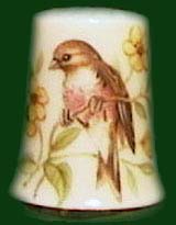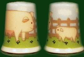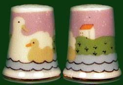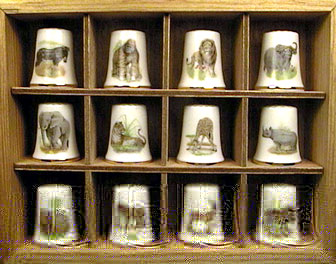 | 磁器製のシンブルで花とともに多いのは動物の絵柄のシンブルです。日本製シンブルでも図鑑のようにリアルに描かれた野生動物から、絵本に出てくるようなもかわいらしい動物まで、さまざまなシンブルが作られています。 | ||||||