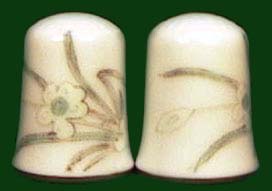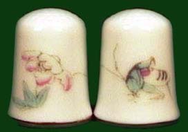 | 染付け風の椿の絵柄と粉彩風の絵柄の新作シンブルです。 粉彩は中国の清代に始まった上絵付けの技法ですが、その代表的な絵柄である蓮の花、梅、水仙、虫などをモチーフとしたシノワズリーな雰囲気のシンブルです。 |