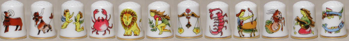 | 12星座の可愛らしいシンブルが出来ました。こちらの商品は12個セットでご購入いただくと割安となります。 |