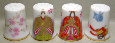 | 3種類の絵柄の異なる「おひな様」のシンブルをご用意しました。 どのタイプも大変可愛らしく、ご好評をいただいております。なお、絵柄によりましては数量に限りがありますのでお早めにお求め下さい。 |