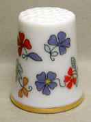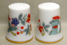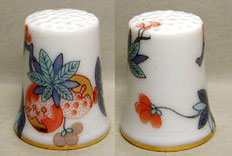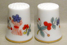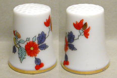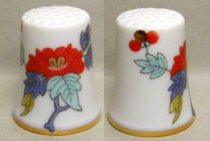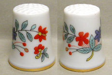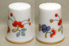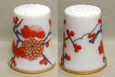 | マイセン風小花散しの新作シンブルです。17世紀末日本から輸出された伊万里や柿右衛門様式の磁器に魅了されたヨーロッパの有名窯は競って東洋的な絵柄の磁器を作りました。中でもマイセン窯の柿右衛門写しは有名です。そんなシノワズリーな雰囲気のシンブルです。 | |||||||||||||||