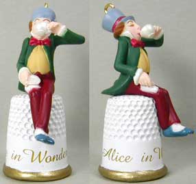 | ホールマーク・オーナメント・シンブル アメリカ・ホールマーク社は日本ではグリーティング・カードで有名ですが、クリスマスなどに飾るさまざまなオーナメントを毎年発売しており、世界中に数多くのコレクターがいます。 ホールマークが1995〜98年に発売した「不思議の国のアリス」シリーズのオーナメント・シンブルをそろえました。 |
