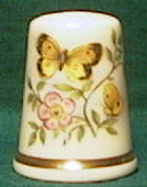 17世紀には銀製のシンブルが使われ始め、さらに、洗練された婦人たちが裁縫を始めるようになると、次第にその他の貴金属も使われるようになりました。その結果、裁縫は中・上流階級の婦人の嗜みや楽しみとみなされるようになりました。シンブルは、街では呉服商が多数扱っており、また玩具や装飾品を扱う店で買うことができ、田舎では行商人や定期的に開かれる市で買うことができました。 19世紀には工業化が進み、さまざまな生地が生産されるとともに、ファッションの開発がいっそう早くなったため、より多くの針仕事が必要となり、シンブルにもさまざまな変化が生じるようになりました。ビクトリア時代にはそれまで手作業であったシンブルの生産が機械化され、さまざまなデザインのシンブルが生産されるようになりました。 このころのシンブルの形は主に生産者独自のもので、1890年以前は単に女性用と子供用に分けられていましたが、1900年以降は9〜00サイズとなり、高い番手ほど小さなシンブルとなりました。 現在、コレクションの対象としては、さまざまなデザインのものが作られ値段も手ごろであることなどから磁器製シンブル(porcelain thimble)が最も一般的です。 19世紀前半には多数の美しい磁器製シンブルが生産され人気を博しましたが、その当時のものは現在ではほとんど残っていないため大変高価になっています。この時代の代表的な磁器メーカーであるロイヤル・ウースターは長い期間シンブルを生産しましたが、生産された年代はシンブルの内側のマークとその有無でおおよそ特定されます。 これらのシンブルは特有のクリーム色の下地に鳥に代表される絵柄が手書きで絵付けされ、作家のサインが記されています。作家としては特にウイリアム・パウエル William Powell(製作期間1900〜1950年:Sue Gowan「Learn more about Royal Worcester Thimble Painters」より)が有名です。ロイヤル・ウースターは1985年に手書きのシンブルの生産を中止しました。
