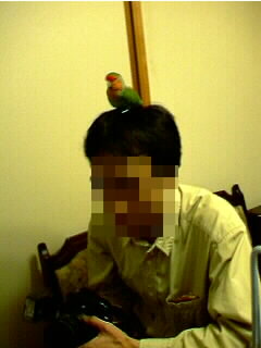 頭の上には乗らないようになりました。今では最初から肩を目指してきます)